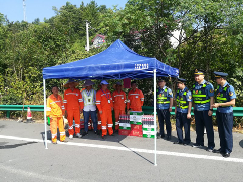 安徽省交通控股集團養(yǎng)護管理中心鮑副主任攜綜合部安全部、安徽省交通控股集團養(yǎng)護管理中心六安分中心和安徽省中興工程監(jiān)理有限公司領(lǐng)導(dǎo)慰問六武高速公路上行線k608銑刨作業(yè)現(xiàn)場施工人員
