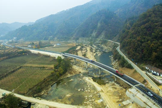 本項工程位于金寨縣燕天路上,是連接天堂寨風(fēng)景區(qū)重要旅游道路。去年“6.30”特大暴雨造成漁潭村境內(nèi)山體滑坡、道路塌方、交通中斷。災(zāi)情發(fā)生后,各級政府及交通主管部門十分重視,立即組織搶修,特別是負(fù)責(zé)該路管養(yǎng)的六安市公路管理局在保障通行的前提下,以最快速度組織專家評審、論證、設(shè)計、招標(biāo)、實施。該項工程全長1356米,包括2座大橋、1座中橋,中標(biāo)施工企業(yè)六安市交通公路實業(yè)有限公司精心組織、全力投入、克服重重困難,經(jīng)過242天的艱苦奮戰(zhàn)終于如期、保質(zhì)、安全完成施工任務(wù)。