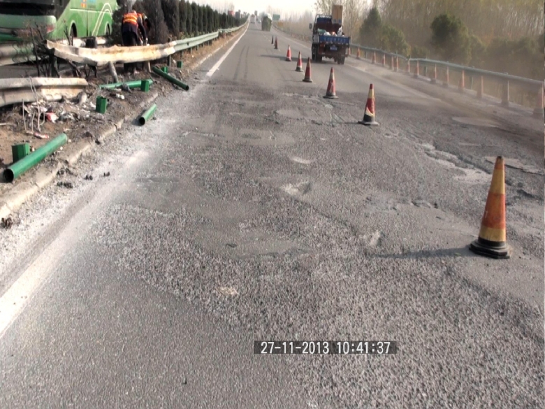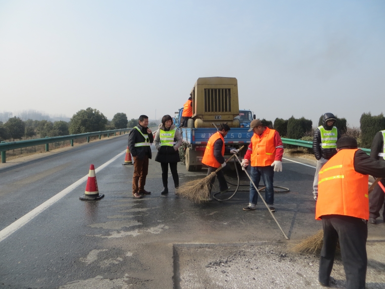 為確保春運(yùn)暢通,應(yīng)安徽省交通投資集團(tuán)道路養(yǎng)護(hù)管理有限公司、高速公路六安管理公司的要求,在合六葉高速公路七大隊(duì)和路政大隊(duì)的協(xié)助下,我單位于2014年1月15日對(duì)合六葉高速公路下行線11月22日交通事故損毀路段(K668+000m-K667+930m)進(jìn)行搶修養(yǎng)護(hù),于16日下午15:00圓滿竣工。
