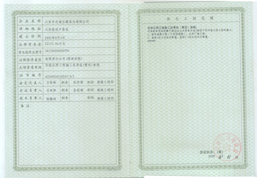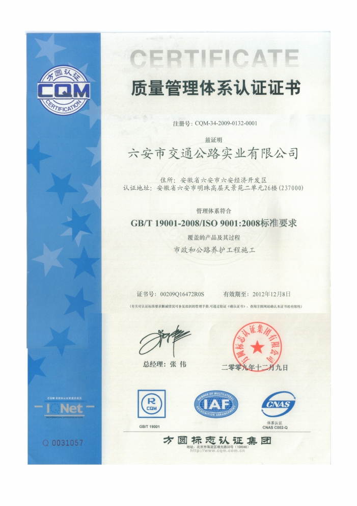 公司取得ISO9001認證及市政總承包三級資質