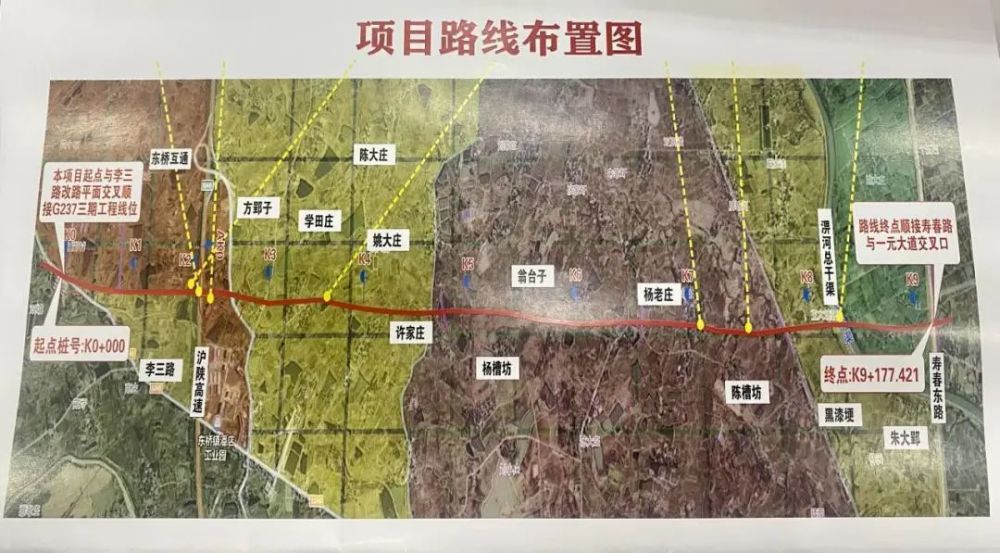 新建段全長(zhǎng)約9.2公里,采用一級(jí)公路標(biāo)準(zhǔn),設(shè)計(jì)速度為80km/h。東橋鎮(zhèn)李三路至東橋互通段長(zhǎng)約2公里,雙向四車(chē)道(跨G40橋梁采用雙向六車(chē)道),設(shè)計(jì)時(shí)速80公里/小時(shí),路基寬25.5米;東橋互通至壽春路段長(zhǎng)約7.2公里,采用“主六輔四”按照一級(jí)公路兼顧城市道路功能標(biāo)準(zhǔn)建設(shè), 設(shè)計(jì)時(shí)速60公里/小時(shí),路基寬53米;設(shè)互通立交1處2座橋,大橋2座,中小橋梁3座。采用瀝青混凝土路面。